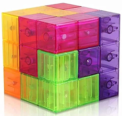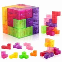 Magnetic Building Blocks Cube 3D Puzzle Cubes Set of 7 Multi Shapes with Guide Cards