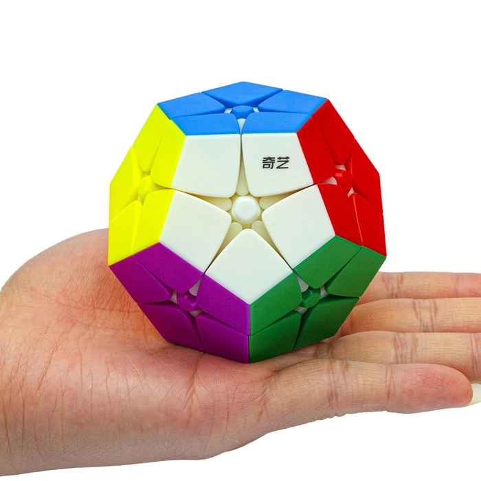 The QiYi 2x2 Kilominx Stickerless is a unique puzzle that combines the challenge of a megaminx with the simplicity of a 2x2 design. Unlike traditional kilominxes, this version features colored fixed center caps, making it more similar to solving a classic megaminx while keeping its compact and approachable form.